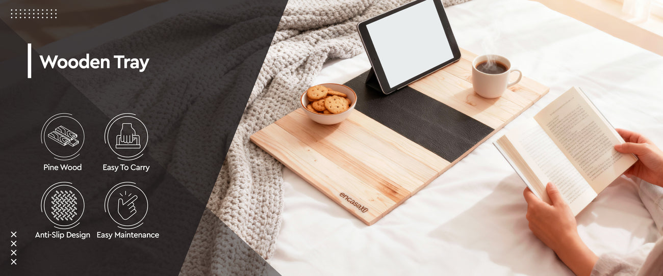 - EXCEPTIONAL BUILD : Made from pinewood, this tray is designed for durability and elegance, featuring a unique leather fabric patch for enhanced grip.